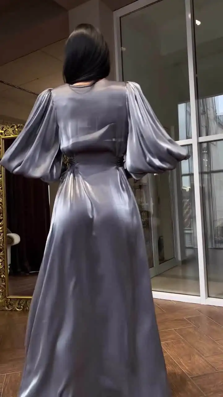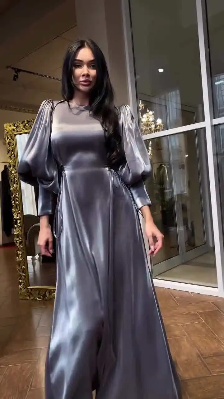 2025 Evening Women Satin Long Dress Black Lantern Sleeve Sexy Elegant Dresses Female New Fashion Casual Party Vestidos Clothes