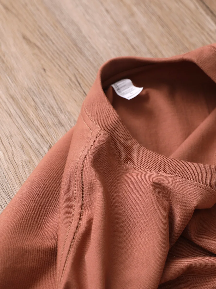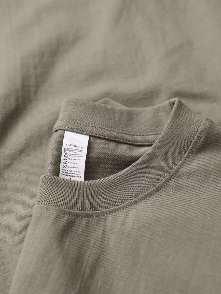 9.17oz 260Grams Seamless Straight Cotton T-shirt Men Oversized Loose Solid Color Drop Shoulder Short Sleeve Summer
