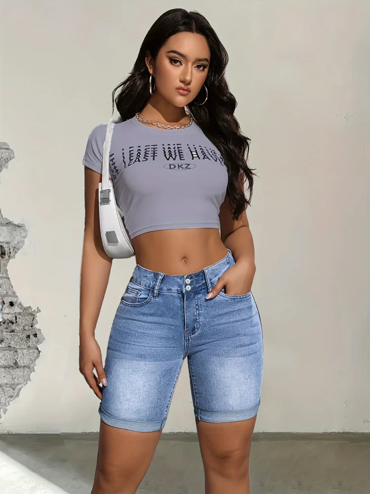Blue elastic fashion shorts jeans women's jeans jeans women