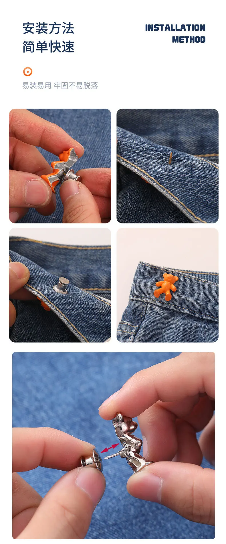 Cute Bear Jeans Buckles Jeans Pants Waistline Reduction Adjustable Metal Buckle Skirt Jeans Tools Trousers Accessories