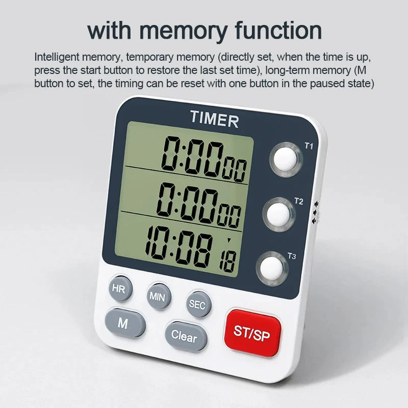 Digital Kitchen Timer 3 Channels Count UP/Down Timer 3 Levels Volume Alarm Clock LCD Display Mute Flashing Timer for Studying