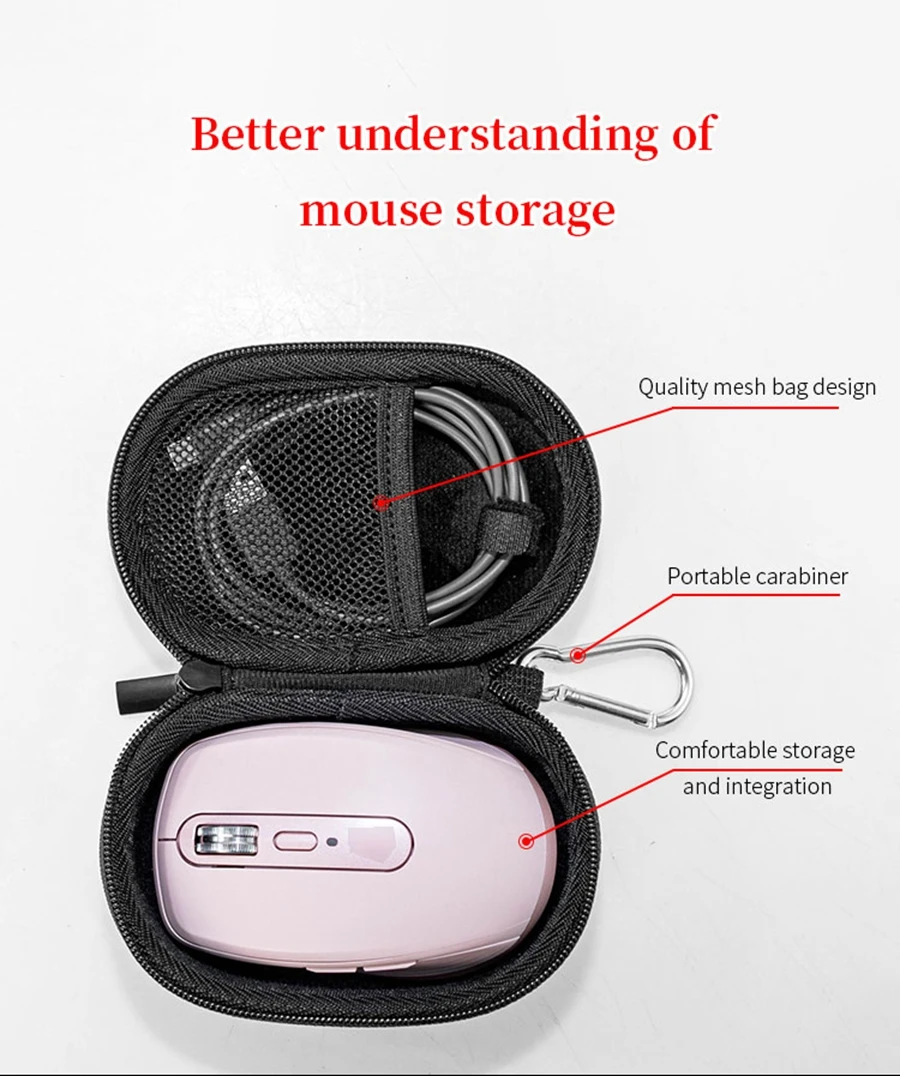 Features: High quality wear-resistant and pressure resistant fabric, exquisite workmanship, comfortable interior+high-quality mesh bag fabric, can store mice and accessories, matched with carabiner, making mouse carrying more convenient