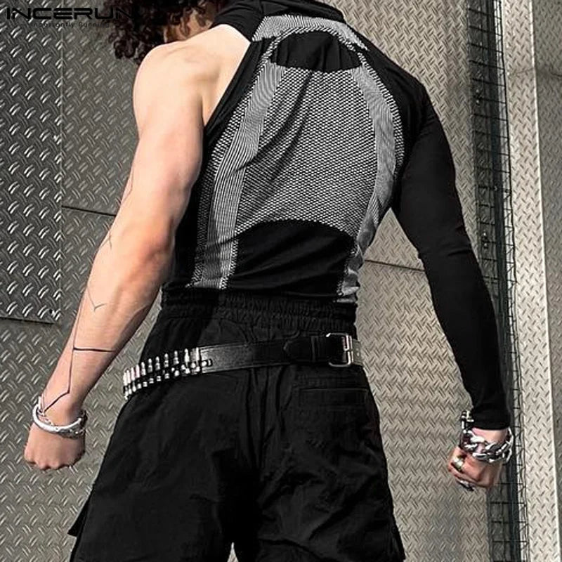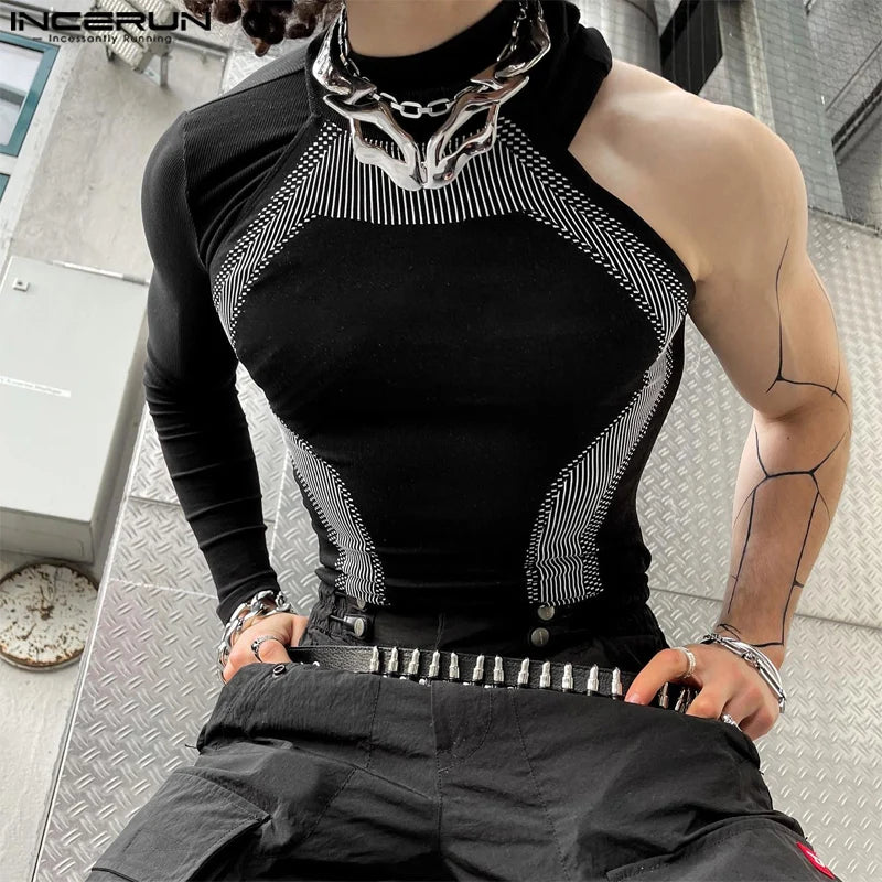 INCERUN Men Simple Camisetas Men Well Fitting Long Sleeved Handsome Knitted T-Shirts 2024 Casual Printing Stand Collar Male Tops