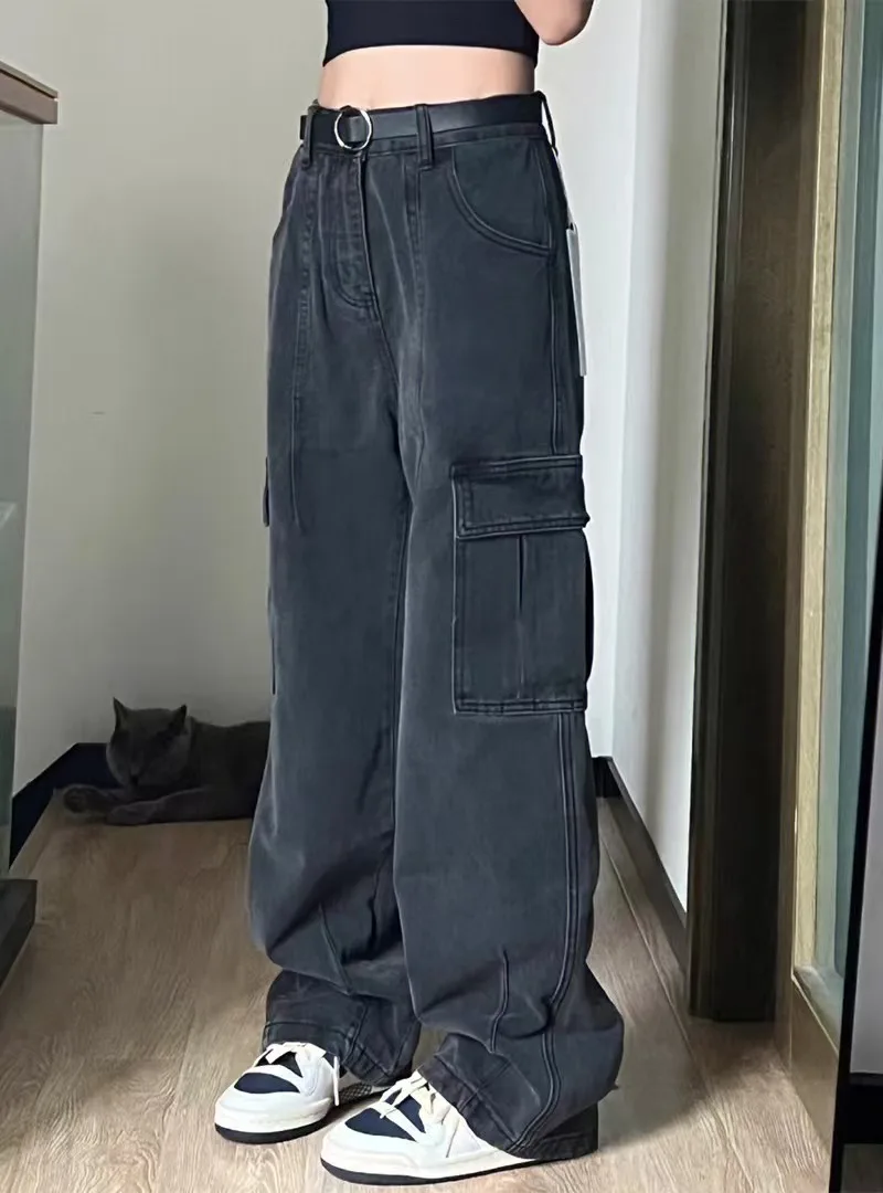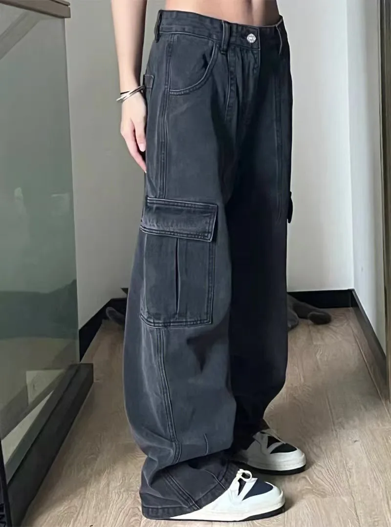Jeans 2025 New American Hiphop High Waist Loose Floor Wide-leg Pants Men Clothing Denim Men's Korean Reviews Many Men's Clothes