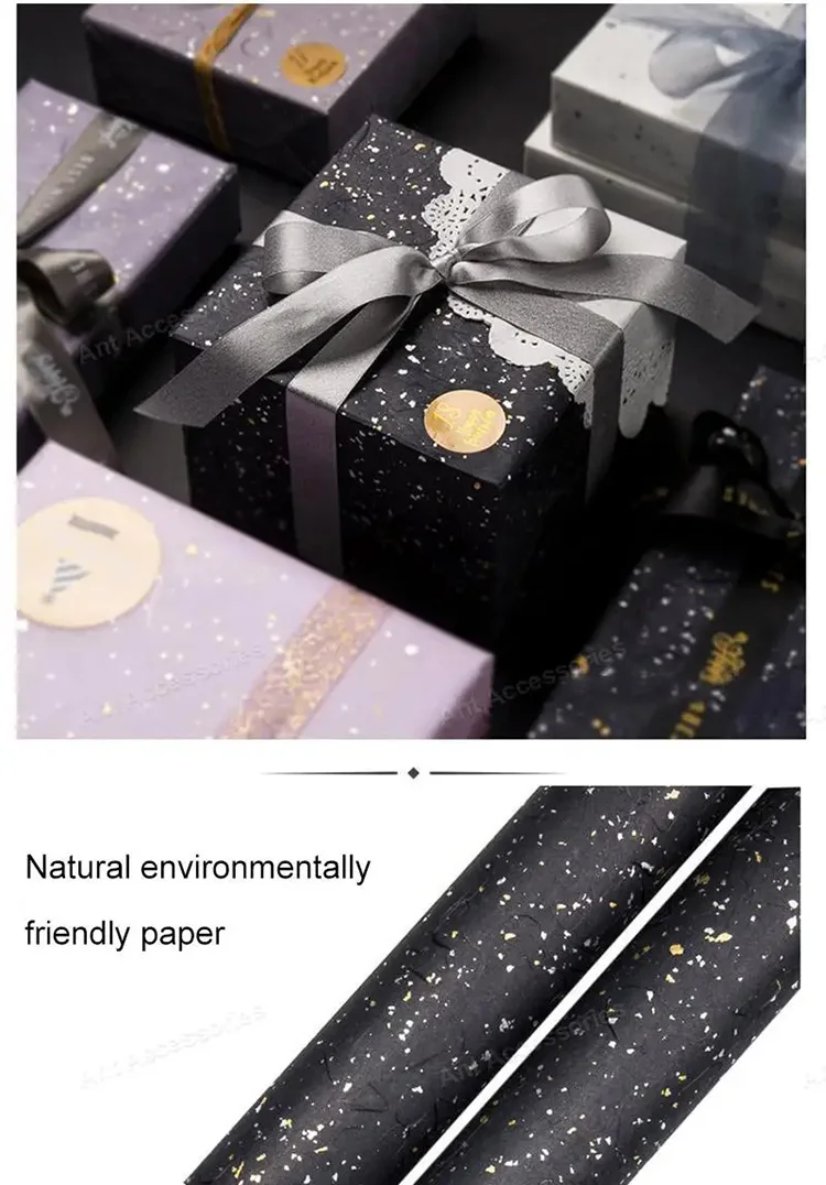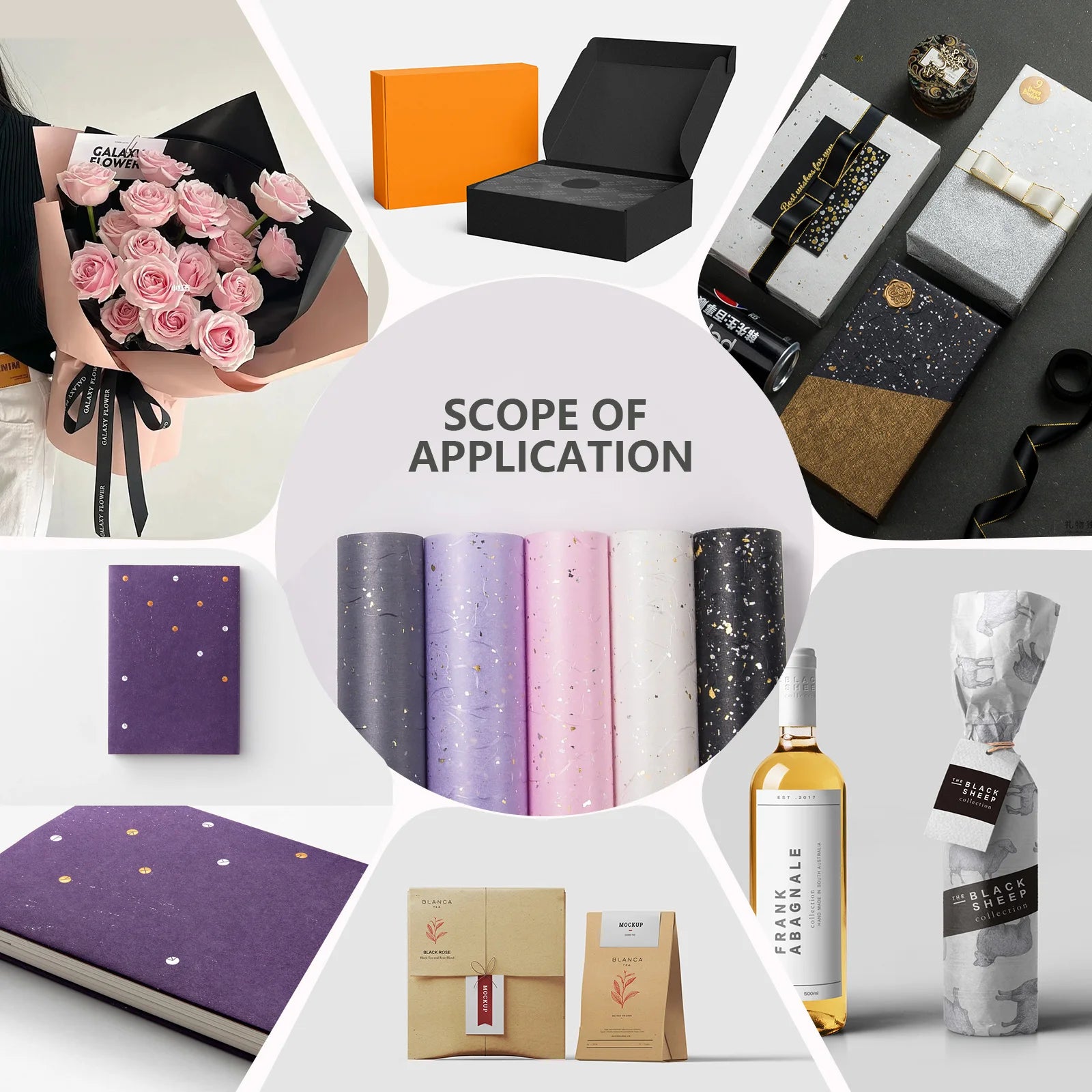 Korean Floral DIY Wrapping Paper Set - 5 Sheets, 6 Colors, Gold/Silver Sparkles, Waterproof for Bouquets & Gifts