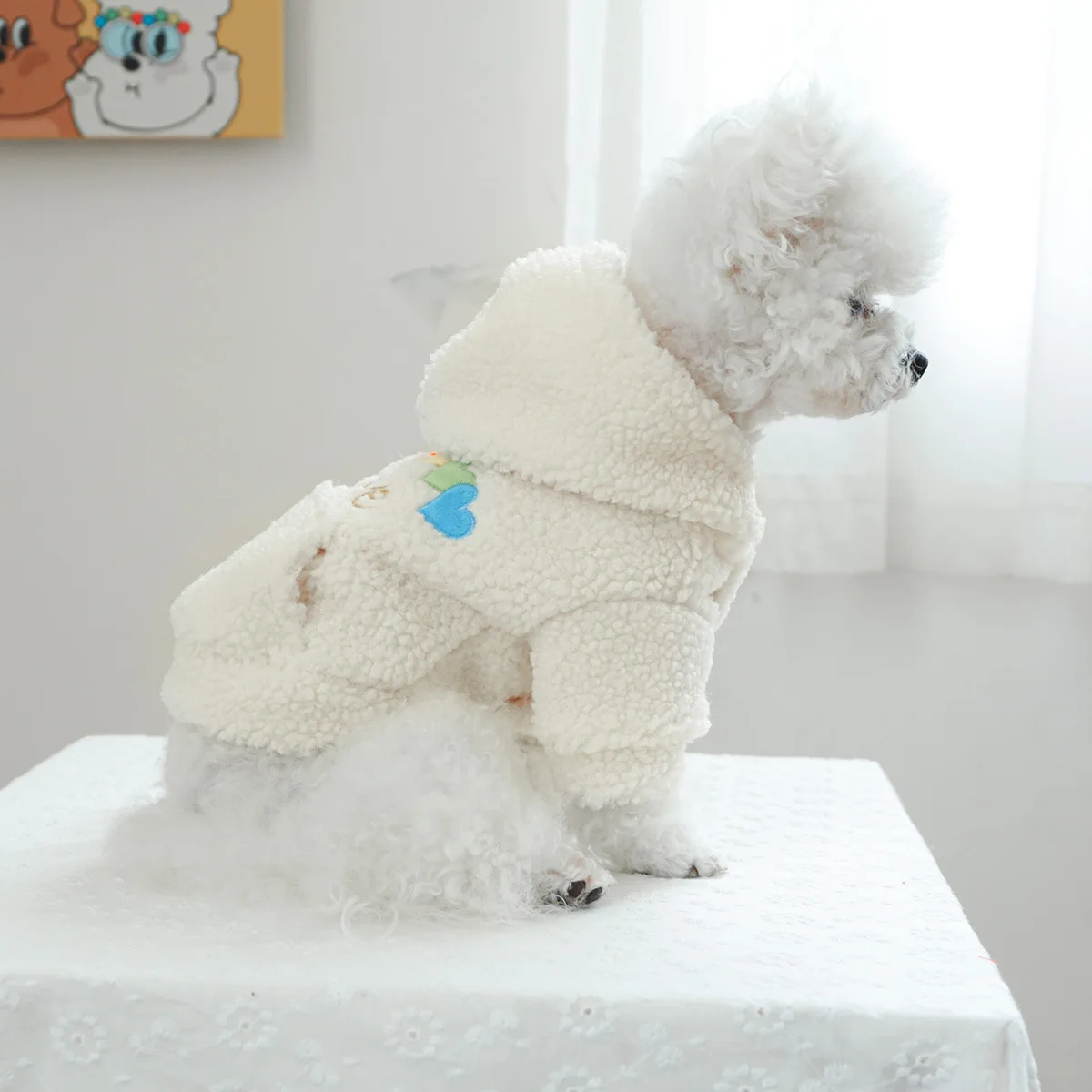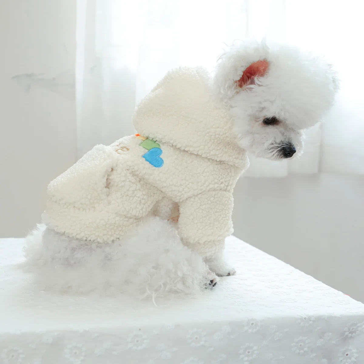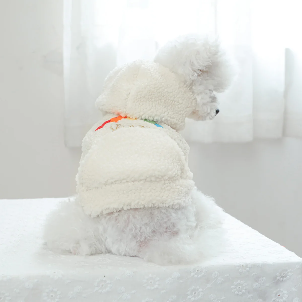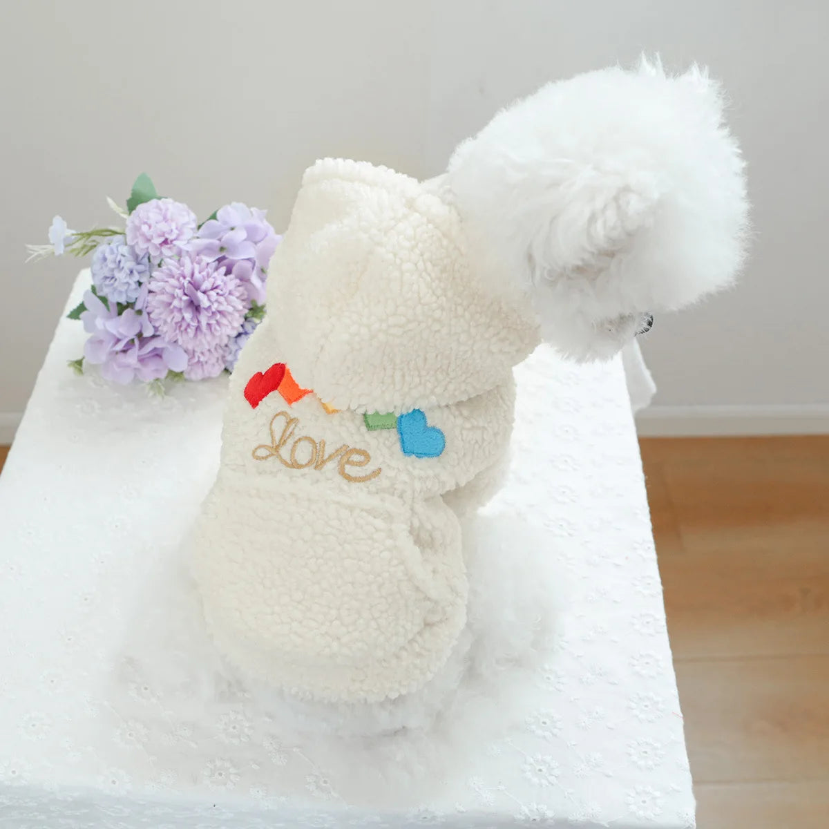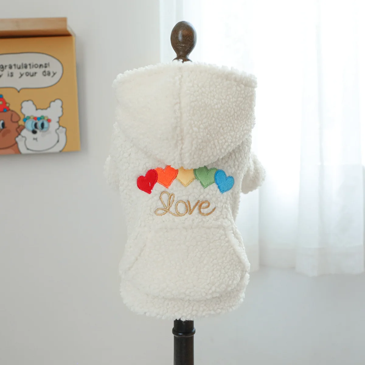 Pet Love Lamb Fleece Coat Clothes Dog Hoodie Coat Cat Clothing Rainbow Love Plush Coat Dog Clothes for Small Dogs Puppy