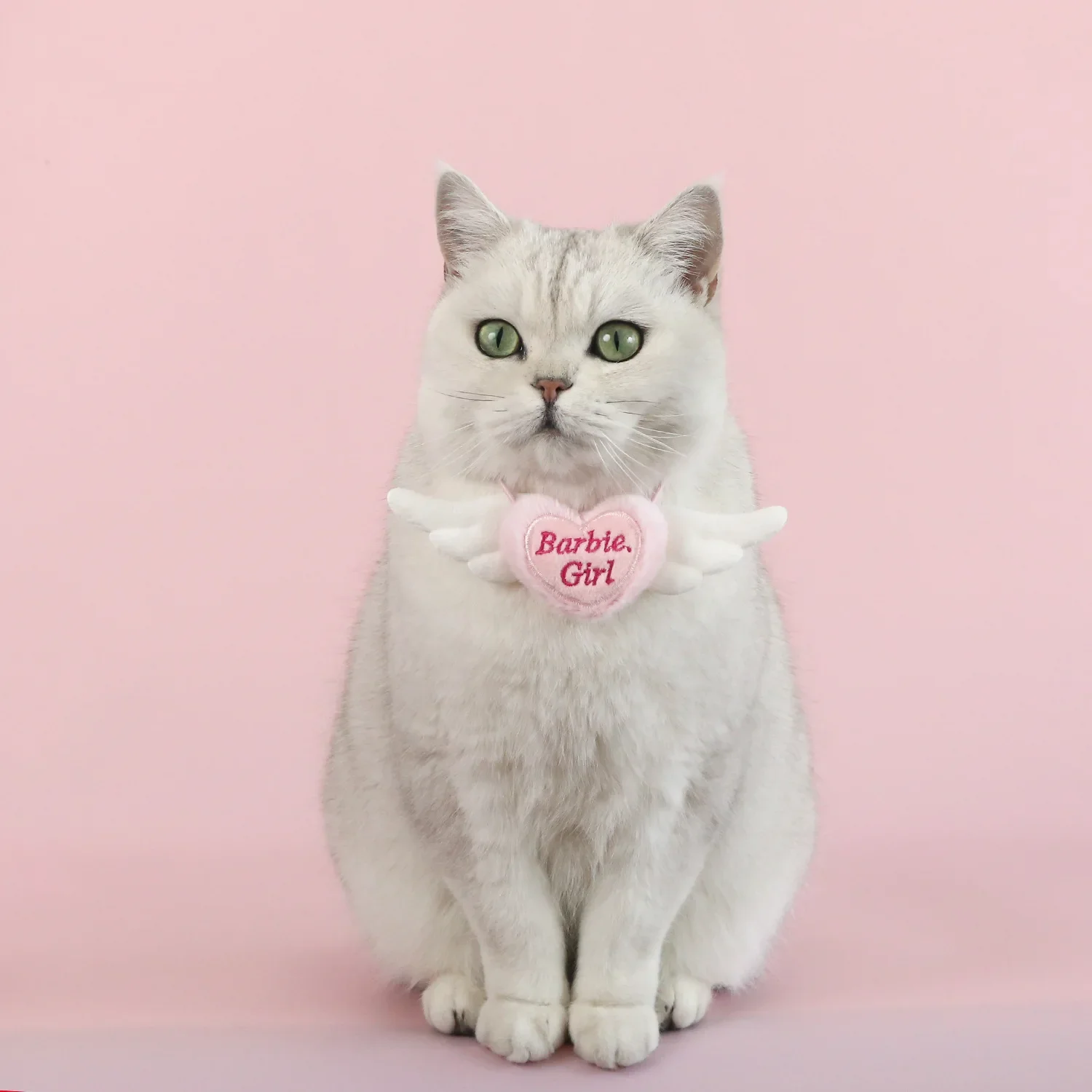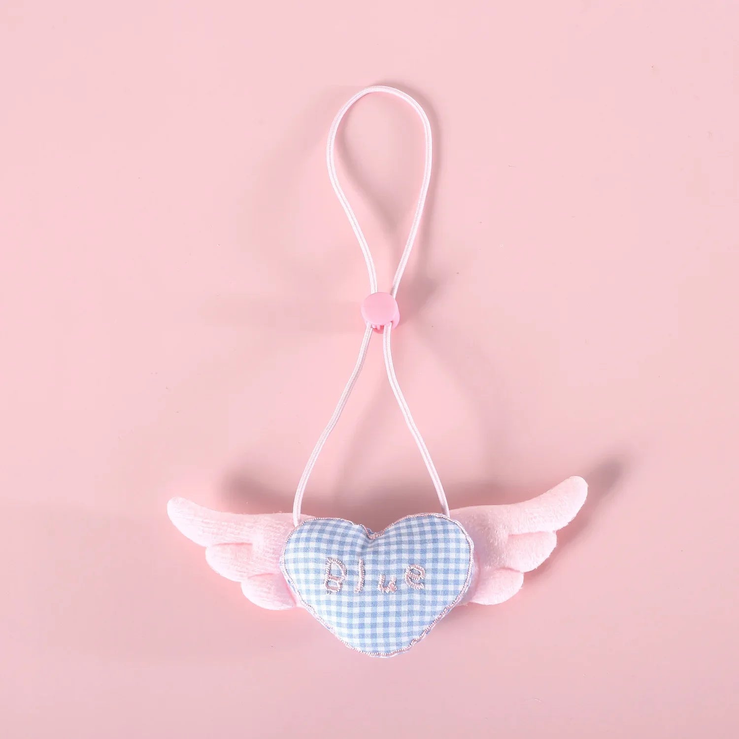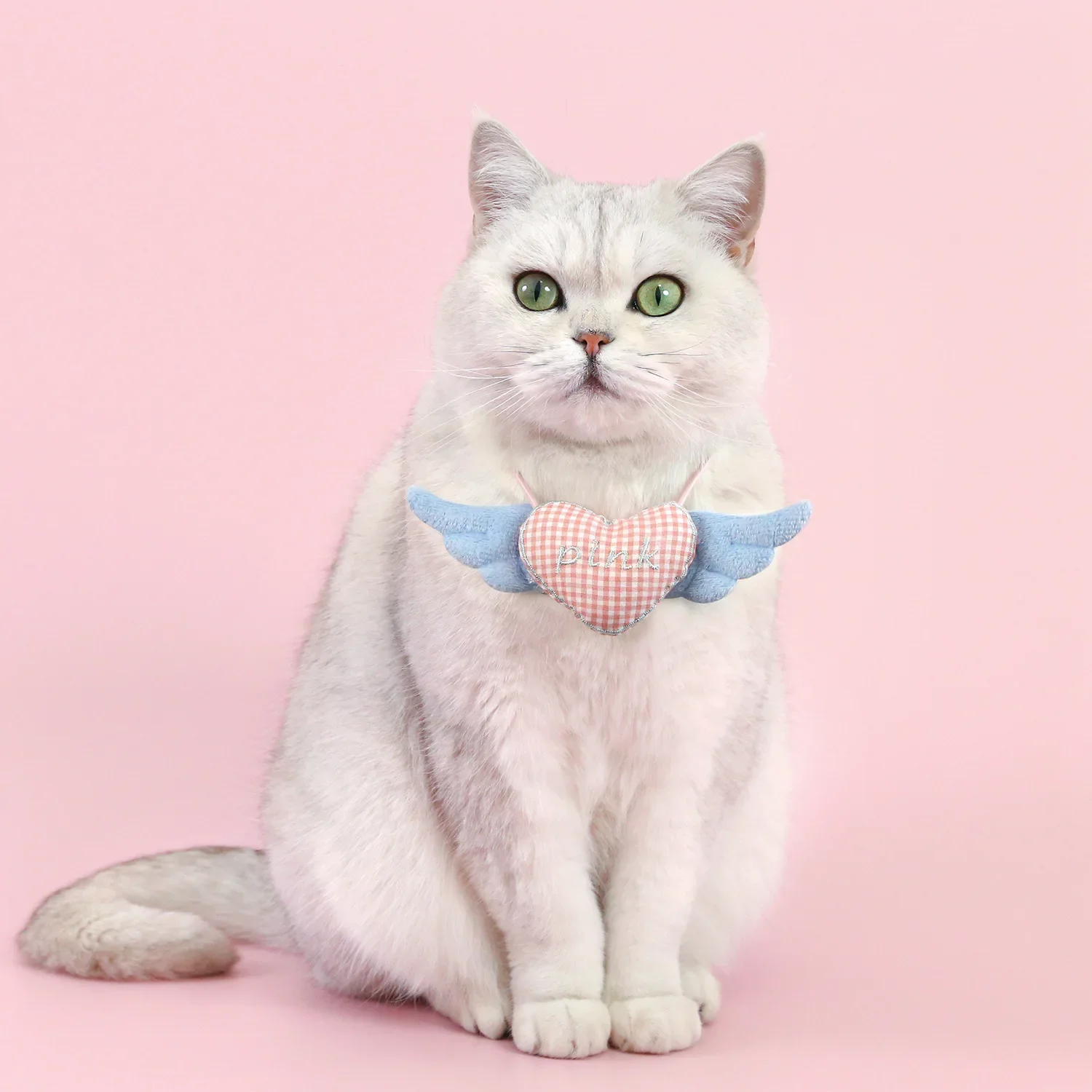 Pet Plaid Love Wing Collar Cat Puppy Teddy Angel Princess Bib Pink Blue Cute Necklace