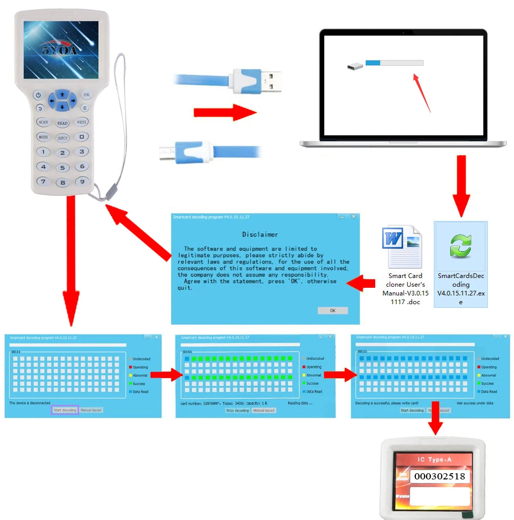 RFID Copier Writer Readers Duplicator 125KHz 13.56MHz USB Programmer NFC Smart 10 Frequency Key fob Cards Reader UID Decoder