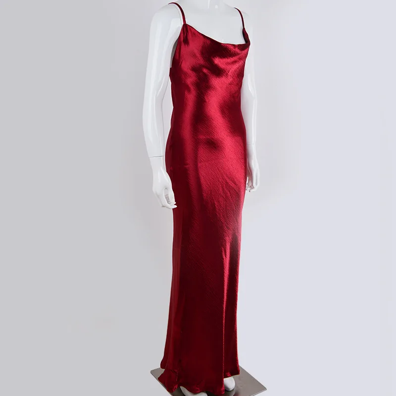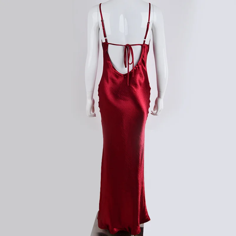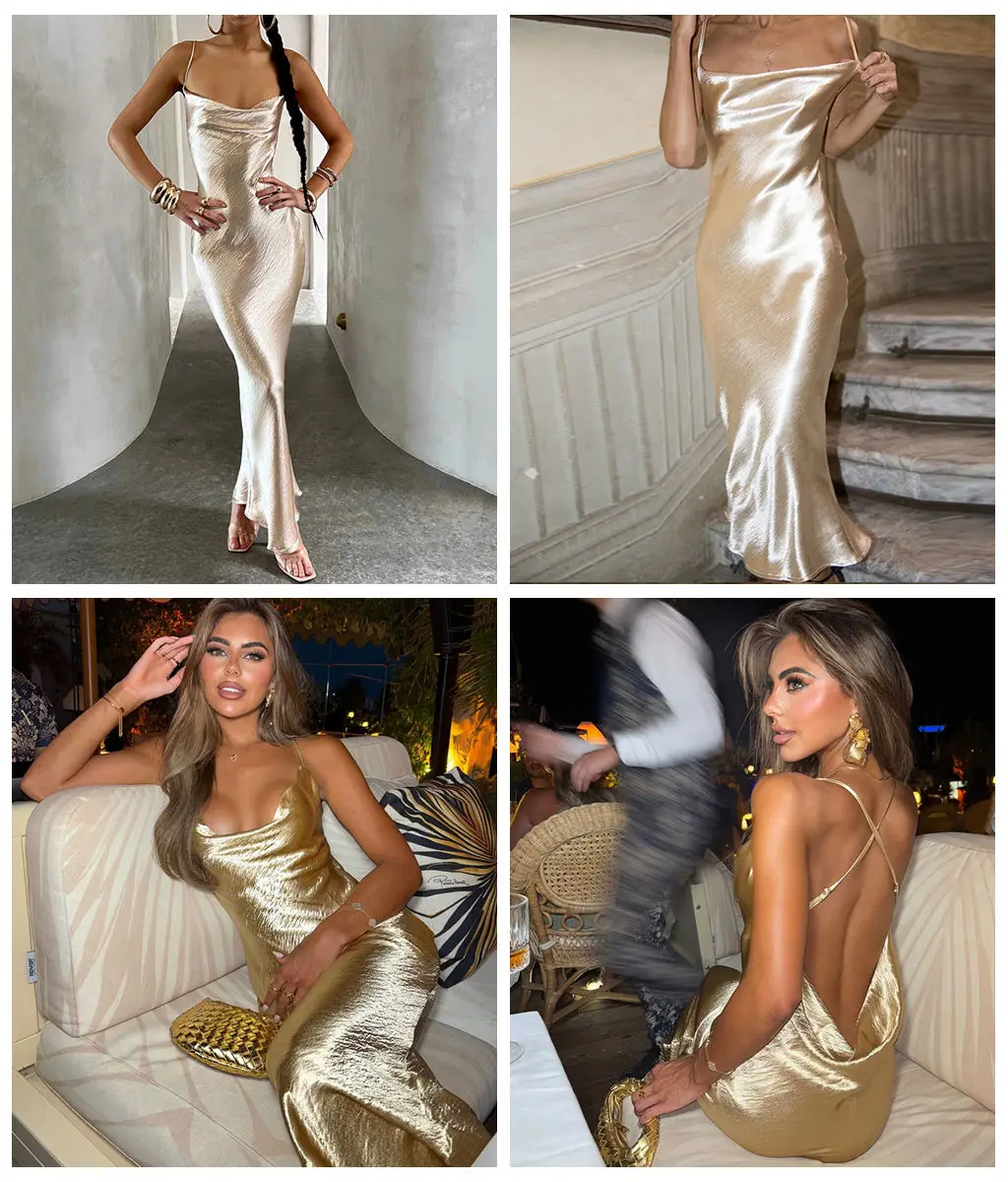 Sexy Spaghetti Strap Backless Summer Dress Women Gold Satin Lace Up Long Dress Elegant Bodycon Party Club Dresses 2024 New