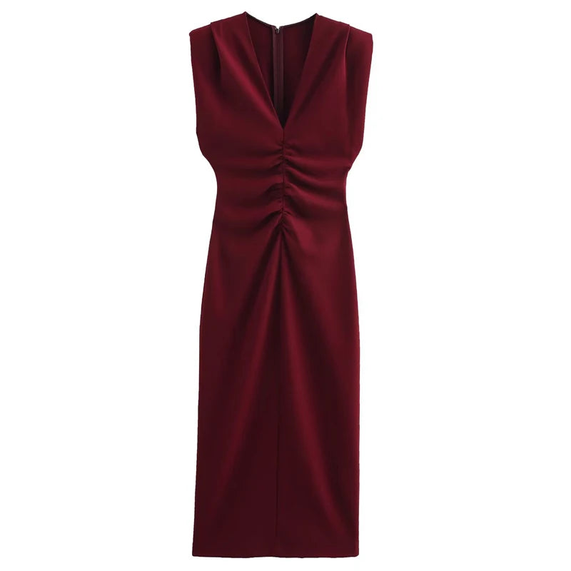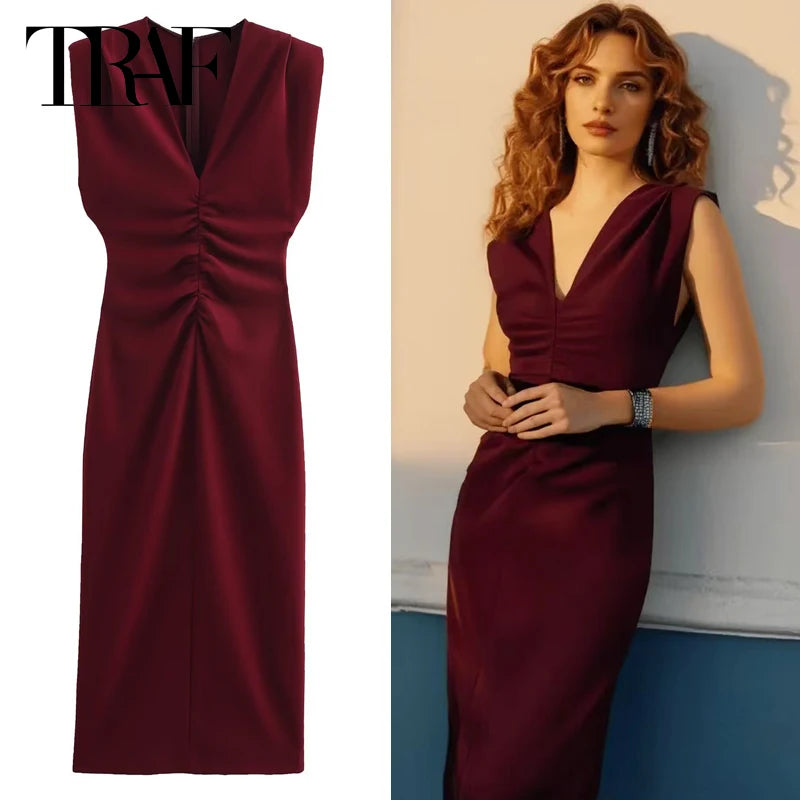 TRAF Women's Red Dress Summer Dresses 2025 Elegant Party Dresses Casual Evening Prom Dress Ruffled Sleeveless Vestido Long Dress