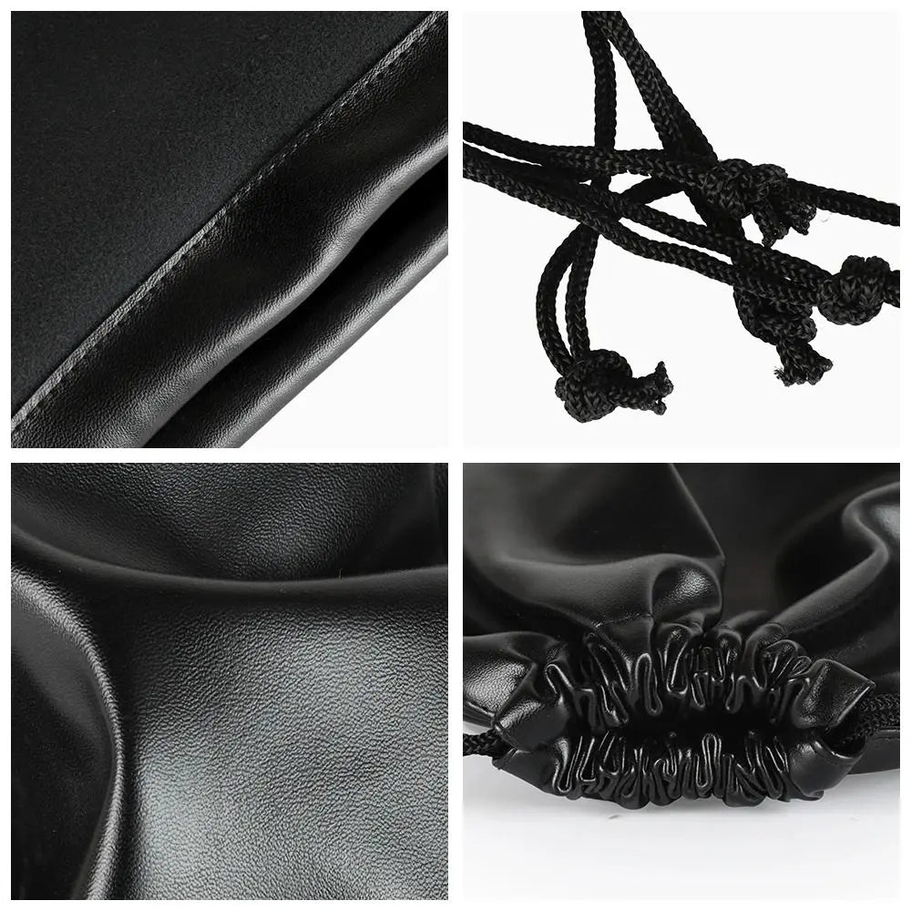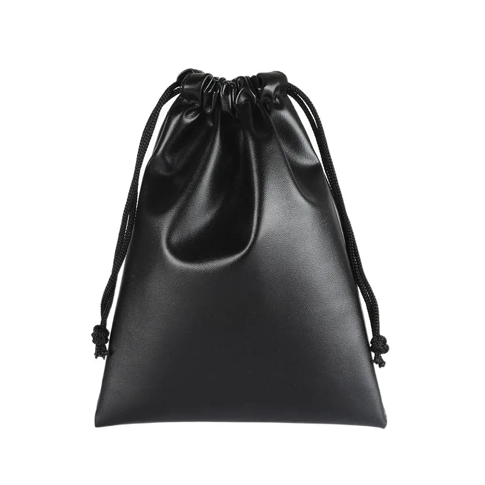 Travel PU Leather Headphone Bags Draw String Bag Black Headset Bag Dust-proof Earphone Cable Pouch Men Women