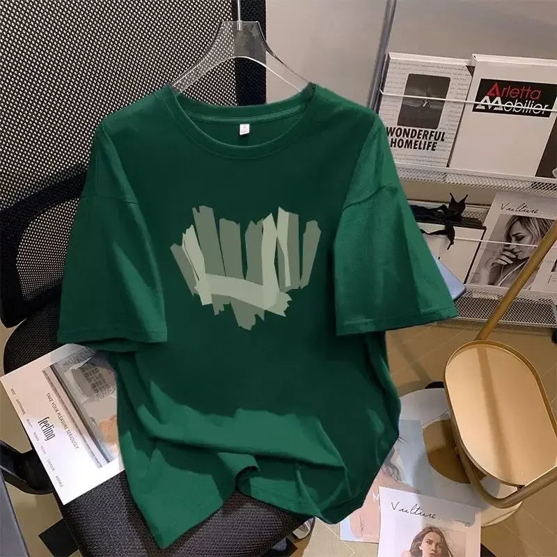 White Pure Cotton T-shirt Women Short Sleeved 2024 Summer New Loose Casual Oversized Half Sleeved T-shirt Round Neck Top Clothes