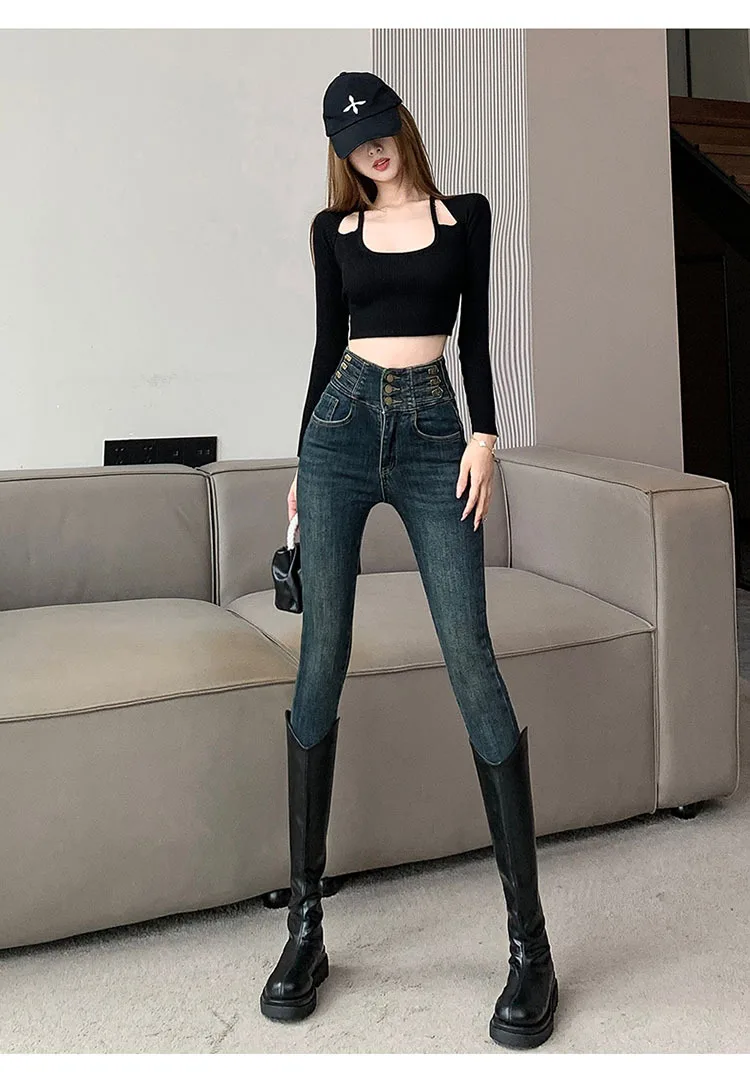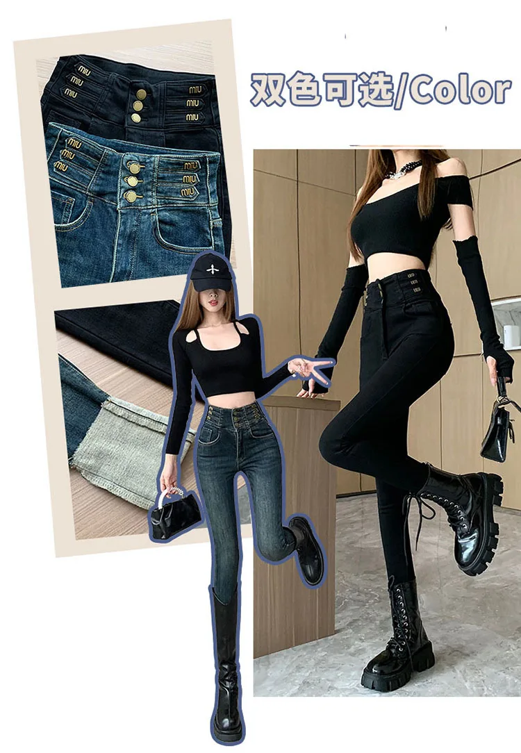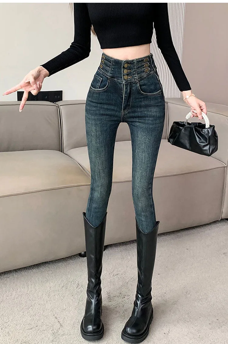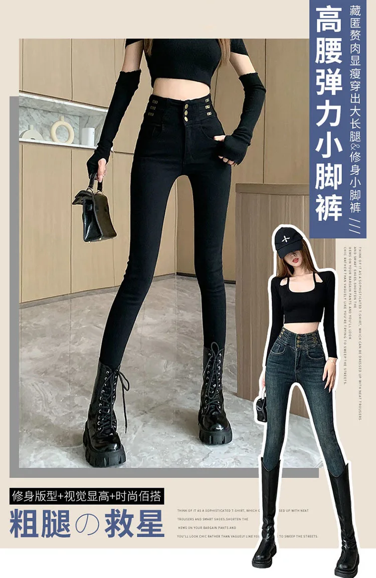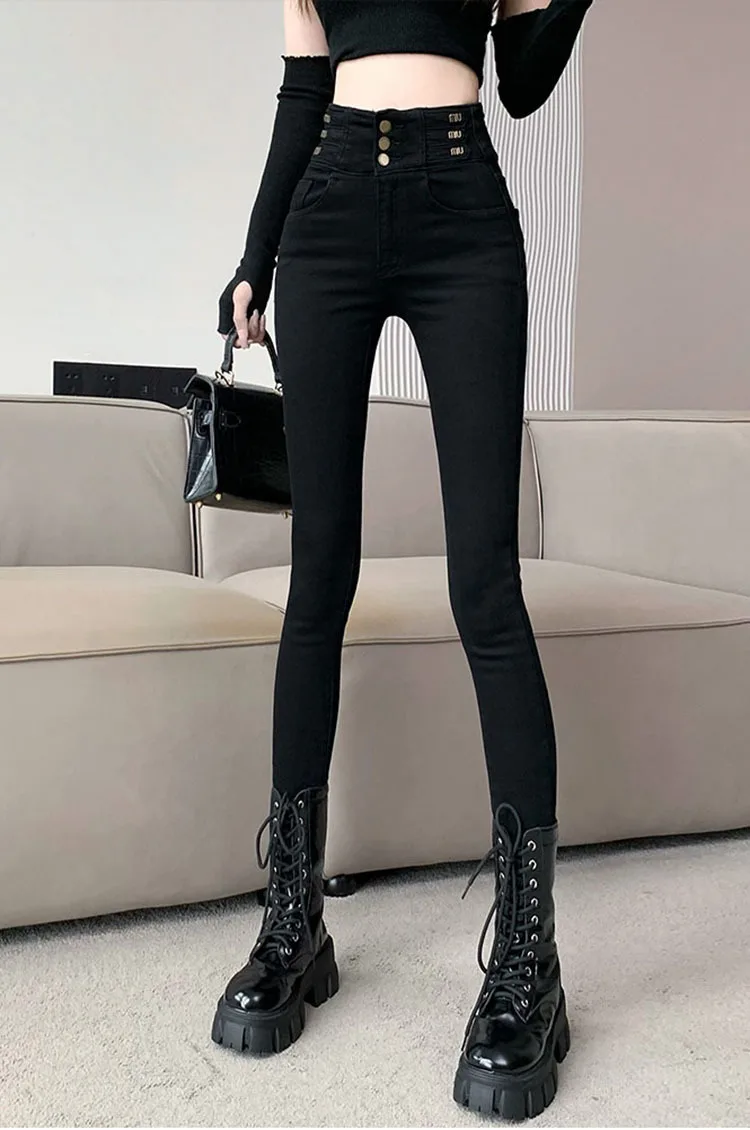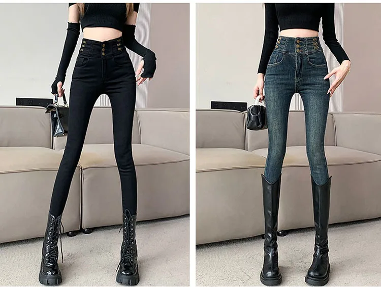 winter warm thick fleece woman's jeans with high waist jeans woman mom jeans women's jeans for women jean femme clothe black