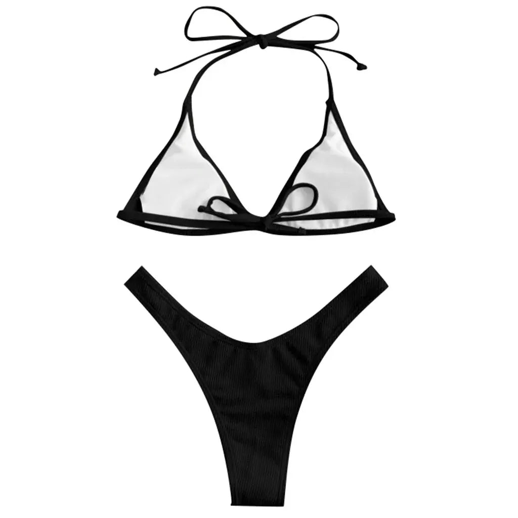 Women Sexy Solid Push Up High Cut Halter Bikini Set Two Piece Swimsuit