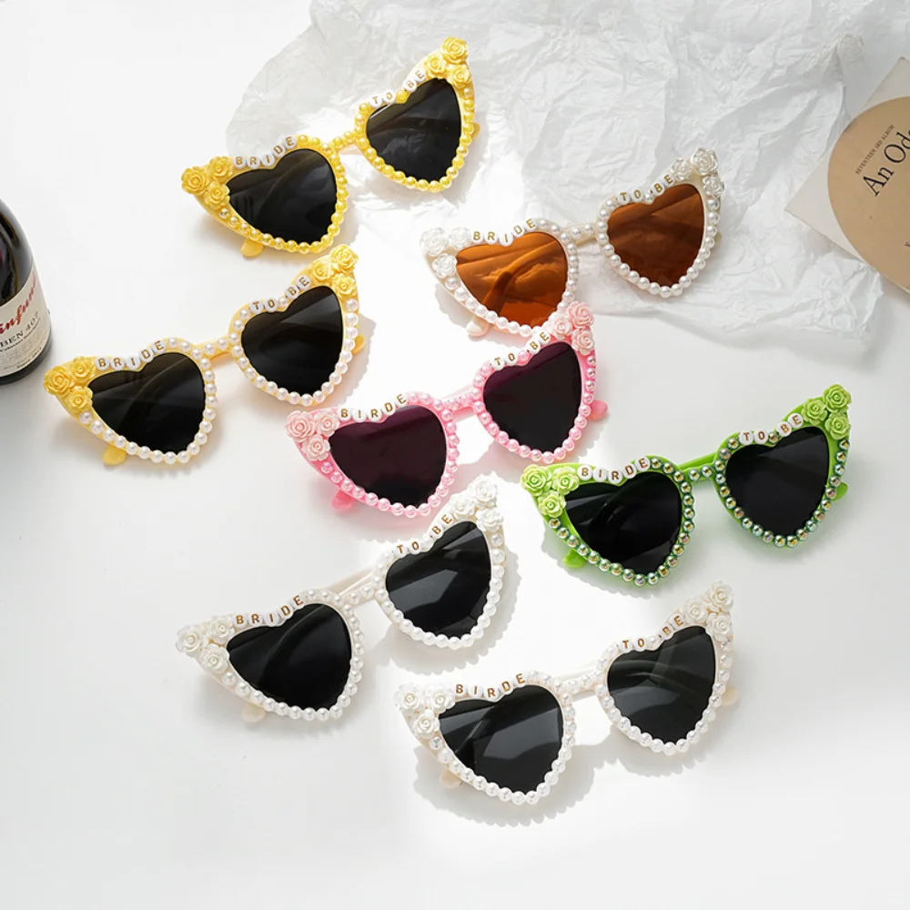 Women Sun Glasses Heart Big Frame Love Inlaid Pearl Fashion Ladies Luxury Sunglasses Wedding Decorative Glasses For Party Use