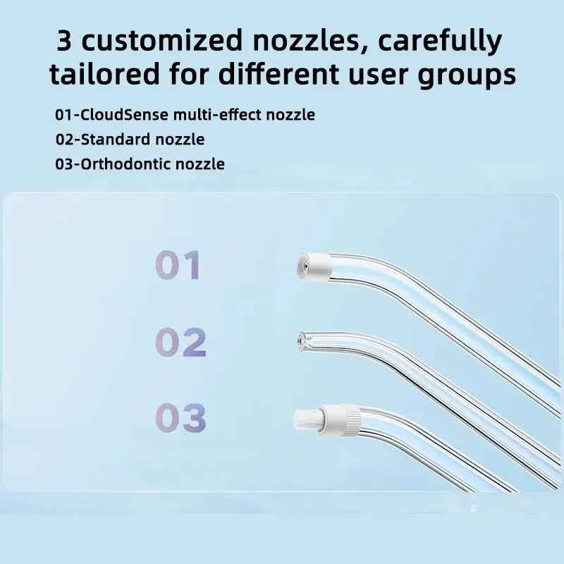 All-new 3-second gradual increase, water flow goes from weak to strong, preventing excessive bleeding and gum injury. Even beginners can easily use it.